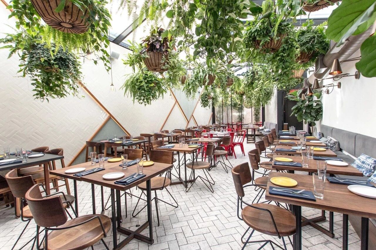 图案来点缀,营造出无与伦比的氛围。其二,郁郁葱葱的绿植也成了洛杉矶餐厅设计的一个关键点,比如